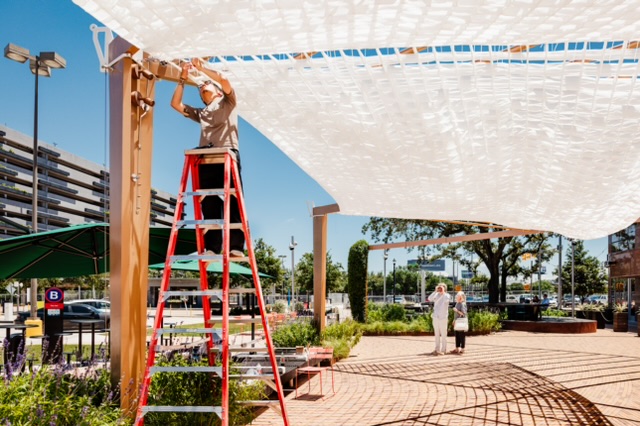 Waves is an interactive installation fabricated by the talented by Hyperlocal, the team of Zhicheng Xu and Moon, that is designed to instill the Ion Plaza with an immediate dose of vitality as visitors enter and exit the building. Now on display as Houston enters one of its most pleasant stretches of the year, Waves will remain a fixture at the Ion for a six-month duration, from May – November.