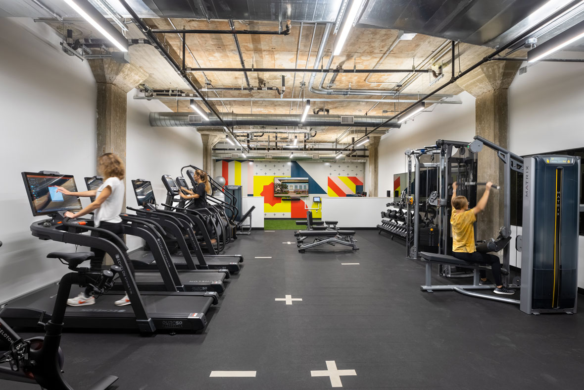 World-class fitness equipment, a turfed stretching area, and expansive weight-lifting area all come together for a well-rounded fitness center available to all Ion building tenants and their employees.